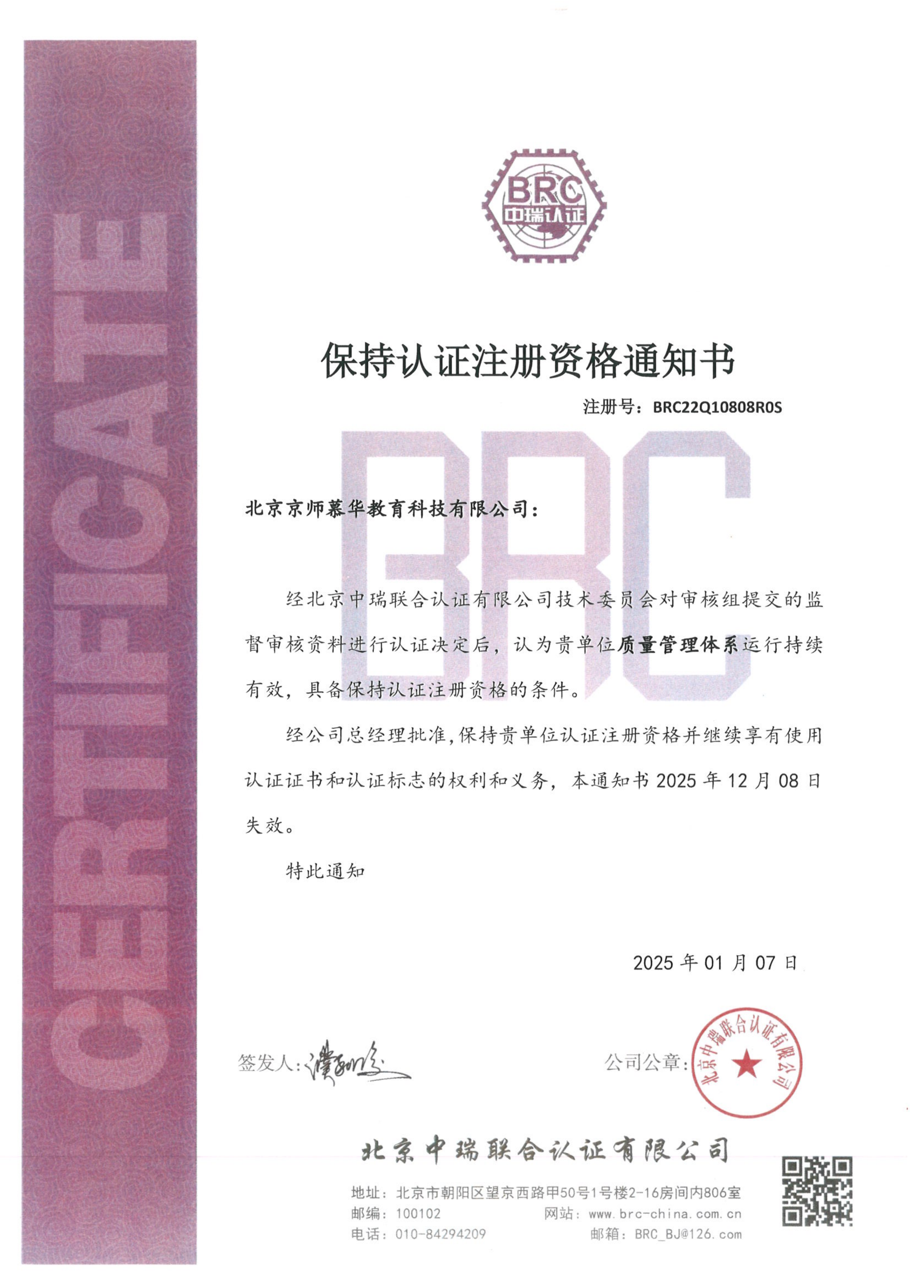 QUALIFICATION CERTIFICATE