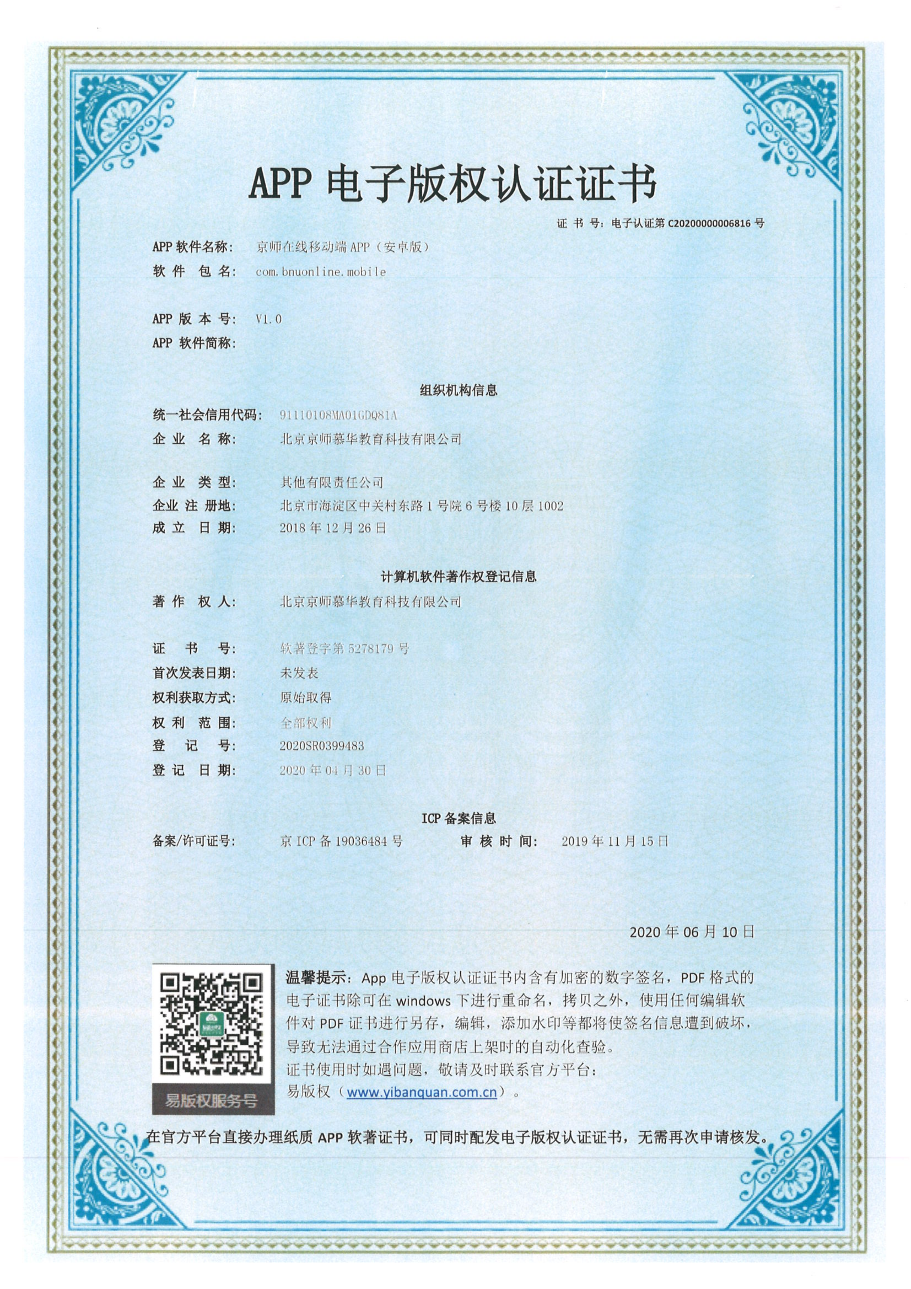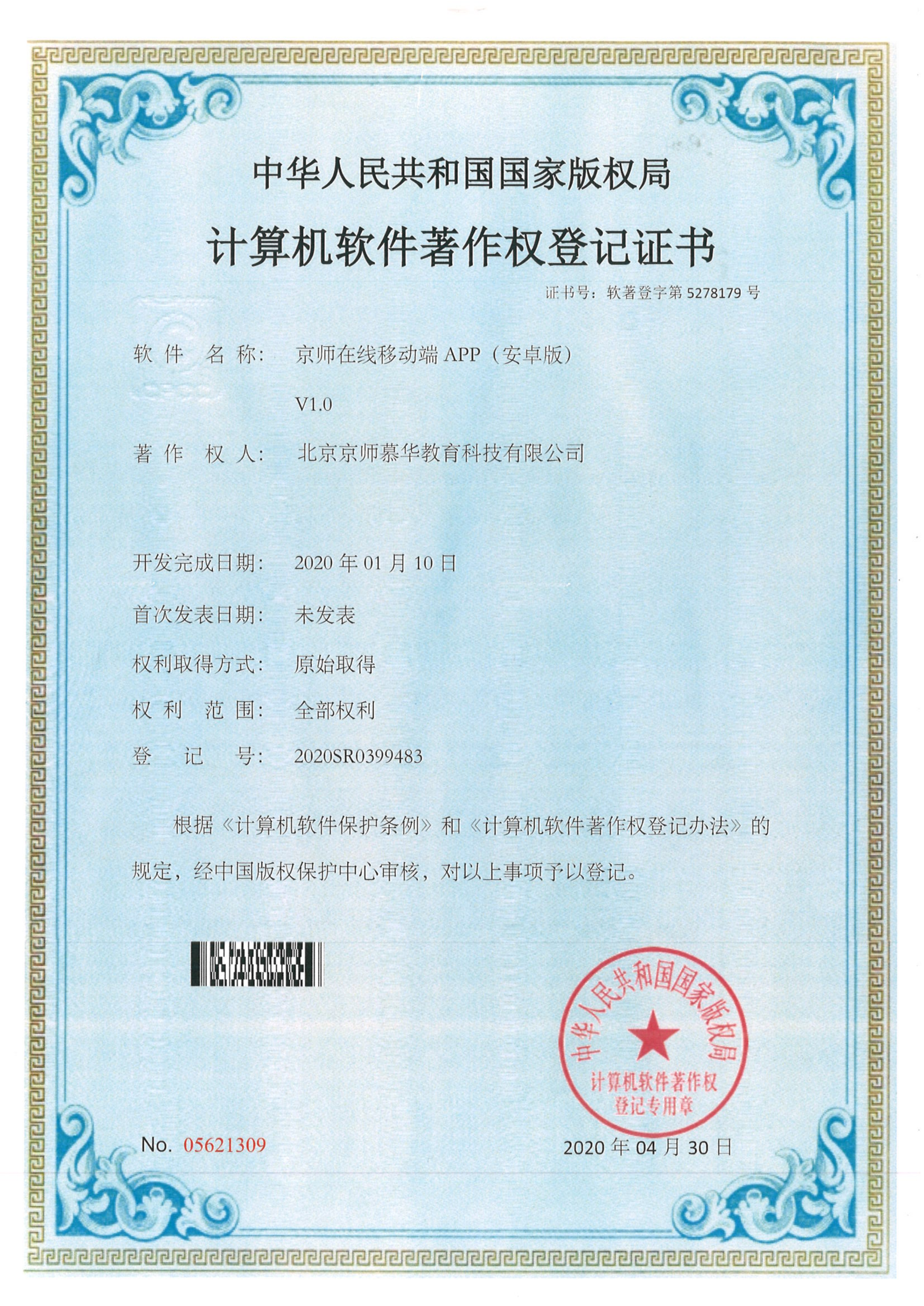 作品登记证书